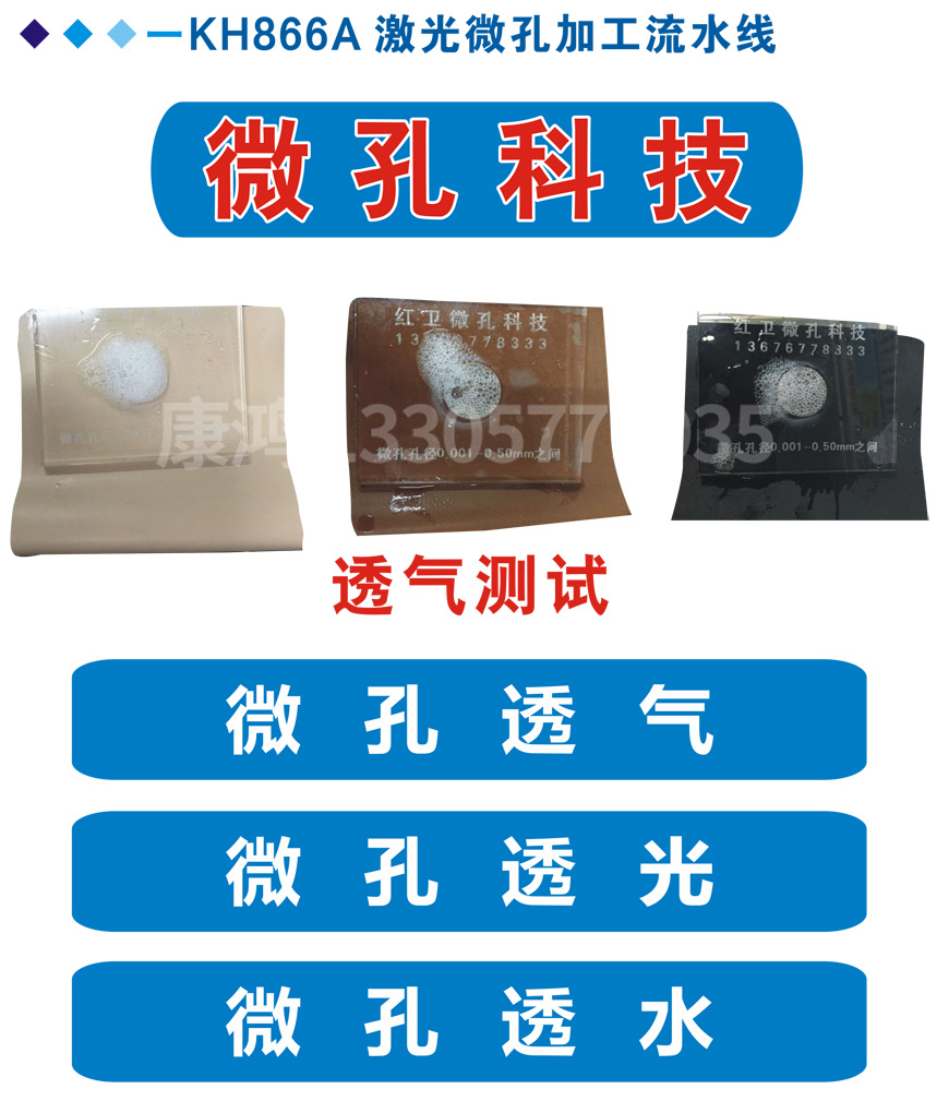 康鴻微孔技術(shù)可以保證在加工過程中零損耗;無任何廢棄物及污染。全方位克服了傳統(tǒng)化學(xué)透氣工藝中產(chǎn)生的環(huán)境污染、透氣性不穩(wěn)定、耐刮性差、整體物理性能下降等嚴(yán)重缺點,大大提升了皮革及各類合成革的品質(zhì)。(優(yōu)點: 鞋子不臭腳、皮褲穿起更舒服達到真皮透氣效果)